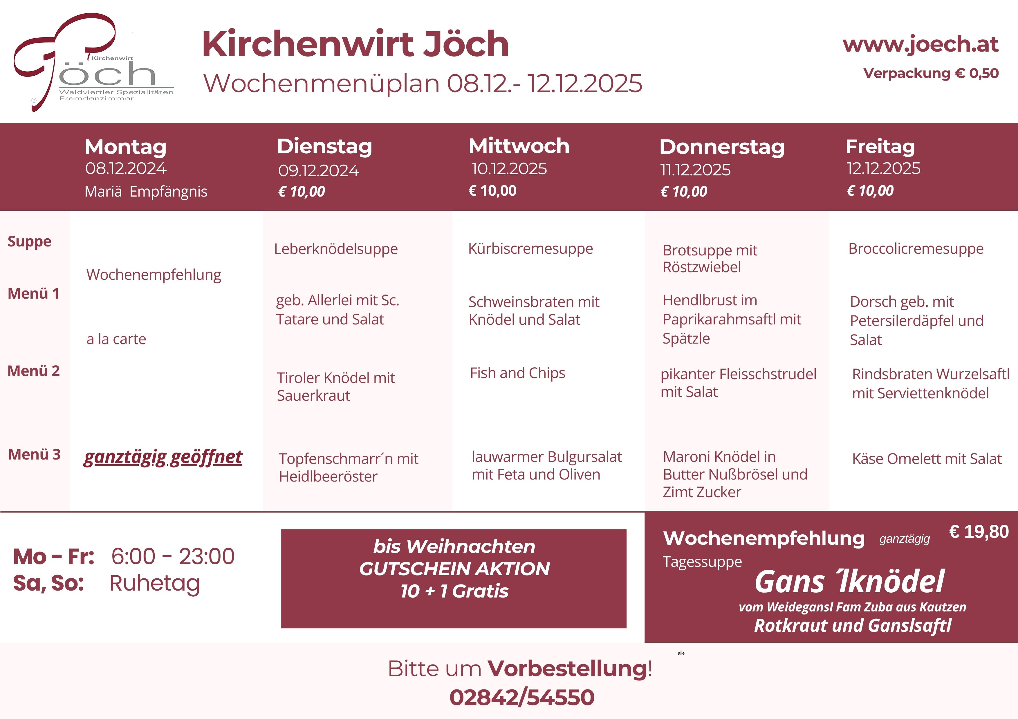 "Take away" Bestellungen fürs Mittagsmenü bitte sobald als möglich bestellen (beschränkte Kapazität-je früher desto sicherer) ansonsten ganztägiges Abholservice